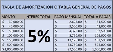 Los montos arriba mencionados son una simulación a plazo de un año y con la tasa preferencial de 5% el resto de nuestros prestamos maneja plazos son fijos y con una tasa de interés fija de 5% mínimo dependiendo el plazo y monto solicitado, no hay variación alguna en ningún momento de manera anticipada sin previo aviso por los medios de comunicación digitales o análogos existentes, en caso de no tener contacto con el cliente se verá reflejado dicho cambio en los estados de cuenta con un mínimo de 30 días naturales a la realización de dicho cambio, el plazo mínimo de crédito es de 6 meses y variará dependiendo de la solicitud de cada cliente, todos nuestros prestamos tienen regulacion vigente ante la CNBV, CONDUSEF, SIPRES y EL BANCO DE MEXICO.